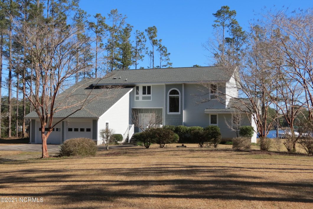 A fine waterfront residence on the banks of Brown’s Creek near Oriental! Uniquely designed to allow flexible uses of the different rooms, elegantly welcoming to friends and family alike. The driveway (partly shared) meanders past your large detached workshop/garage to the home, which presides graciously over a 2.06 acre homesite. A step through the front door into the formal foyer (with 1/2 bath) will offer glimpses of the water views awaiting you in the grand living room. A soaring vault, fireplace, bookshelves, as well as a wall of sunny windows creates a space both intimate and convivial for gatherings and quiet repose. The views out across the creek are lovely & inviting – you’ll love to stroll to your deep-water pier (with a boatlift) to enjoy a day of fishing, sailing or exploring the finest waters in the region… Just outside your door! The home is designed with a nod to the formal – an elegant dining room adjoins the cook’s kitchen and breakfast area. These rooms all communicate together and several doors open to the screened waterside porch, a perfect spot for dining or late-afternoon cocktails. The master bedroom wing is on the first floor and is designed to be a self-contained refuge, with a separate entrance (private deck), and a kitchenette/dining area all its own! There is a small stove/oven, refrigerator, sink, large storage WIC and ensuite bath! Upstairs is a lofted hallway with a unique series of rooms: One side has a large room combination which might otherwise be a master bedroom. It features a x sitting area, 2 huge closets and quick access to a hall bath with a tub and custom tiled walk-in shower! Adjoining is an office with built-in shelving, storage and gun cabinet. Another big bedroom awaits with two correspondingly huge closets… You’ll never need an attic with the abundant storage! A like-new roof and Hardi-type siding on the exterior (plus wood in the porch). A large deck overlooks the water. A great waterfront value for you!