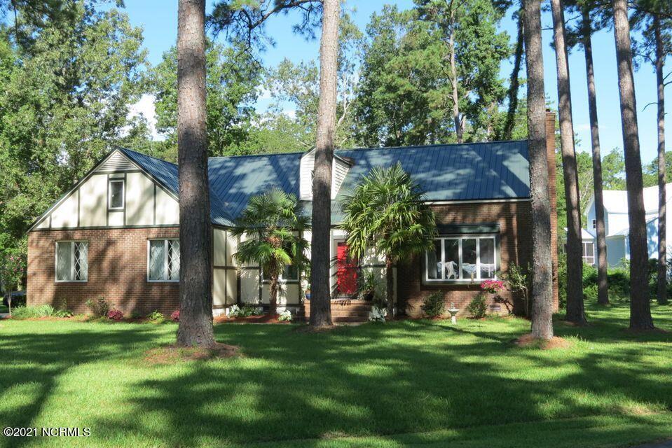 A lovely three-bedroom charmer near Oriental with everything you’ve wanted! Presiding over a sylvan corner in the desirable Sail/Loft neighborhood, the residence is placed and angled perfectly, allowing enjoyment of the grounds and the home’s unique beauty. The creative use of materials (brick, faux-stucco, wood and vinyl) imparts an elegantly-distinctive appearance with a slight Tudor flair! An efficient layout welcomes you from the tiled foyer into the cozy living room (fireplace and window bank) and formal dining room. A huge country kitchen is brightened by an impressive bow-window arrangement, whose curve invites sunny morning views of the peaceful back yard. Kitchen features abound, such as new granite counters, lots of cabinetry, tile backsplash, gas center-island range and a large area which makes a splendid gathering area or alternate dining room! From the kitchen, a short hall leads to the large mudroom, 1/2 bath, laundry room, garage and the private 6′ x 16′ screened porch! Although the carpeted downstairs bedroom is currently the master bedroom, the expansive upstairs (w/ separate heat pump) makes for an exceptional suite. It offers a large walk-in shower in the luxury bathroom and a corridor to a large finished room over the garage… (Think game room or exercise area) with a full potential flight of stairs to the garage – the stairway is currently shut off, but might be reopened as secondary access with a minimum of fuss. This home was artfully designed with flourish and careful consideration for abundant storage and flexible use of space! The grounds are lovely with enough large trees nearby to impart a shady overstory of woods yet lots of sunshine. Concrete driveway, Andersen windows, metal roof and a short bike ride to the Village and the marinas. As unique and beautiful as the ”Good Life” should be in Oriental and Pamlico County!