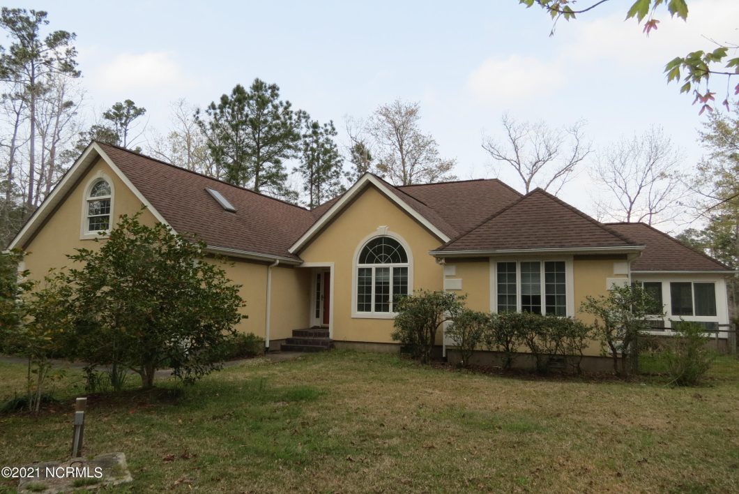 Sailors and boaters- this hidden waterfront gem awaits on three waterfront lots, just a short bike ride to Oriental! A winding drive reveals a private residence on tranquil and protected Pierce Creek in the Bent Tree Landing community. You’ll appreciate how the residence has been constructed on the center parcel (1.6 acres) of the combined tracts. Lot 10, to the left of the home, is the driveway entrance and is a 1.54 acre standalone waterfront parcel… To the right of the home is Lot 12, another standalone building lot, shares the pier’s location & consists of 1.28 acres. The combination creates an estate of over 4.4 acres! The home was designed for low maintenance, with synthetic stucco siding and Andersen windows – as well for enjoying the gorgeous surrounding water views of Pierce Creek. Most rooms have lots of glass for enjoying the scenery around the creek and open to the large ( 12′ x 38′ ) waterside deck! As you enter the large foyer, your eye will be drawn across the expansive wood floors, through the living room to the waters beyond!! The sense of interior spaciousness is notable & impressive, with the vaulted living/dining areas leading to the huge country kitchen design and attached sunroom. The plan is open and ready to host large gatherings but with welcoming private areas for quiet reflection, creating the perfect combination of spaces for every need! The living room shares a two-sided gas fireplace with the adjoining master bedroom, which enjoys the ultimate in luxury baths – a huge walk-in shower w/glass block, whirlpool tub & laundry room! The kitchen features lots of cabinetry and prep areas for the gourmet chef. Two guest bedrooms are tucked away nearby. Above the large garage (w/workshop area) is a nifty office/bonus room with room-length shelving. This unique property is priced to allow you to make the necessary improvements/updates to your taste and make this a rare creekside investment opportunity! Over 510′ of waterfront !!